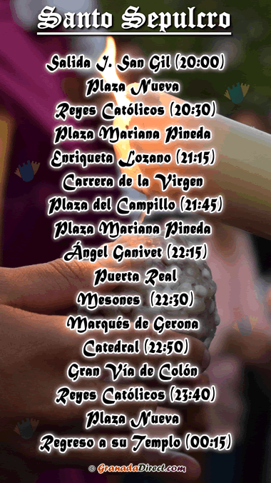 Horarios de las Processiones, Viernes Santo en Granada, 3 de Abril 2026